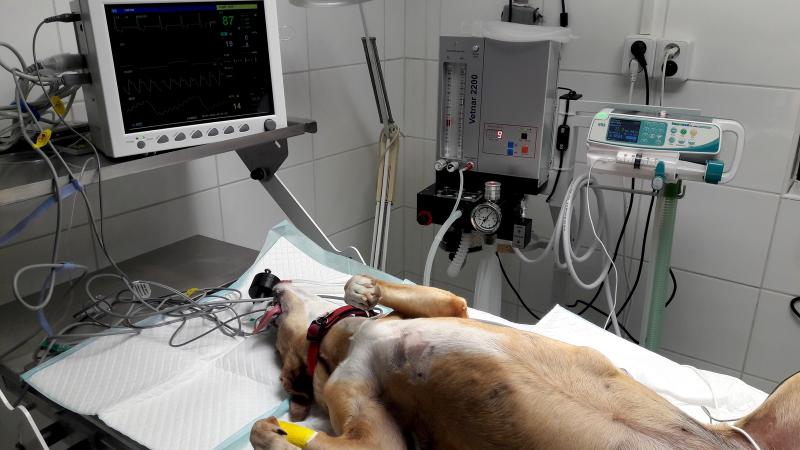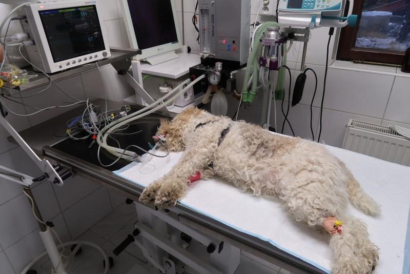 Inhalační monitorovaná anestezie, řízená plicní ventilace. |