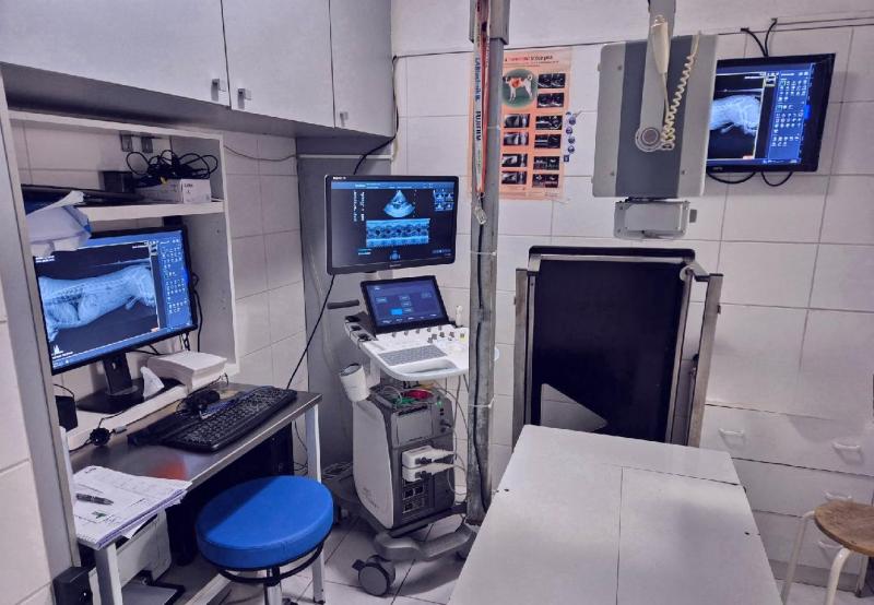 | Diagnostický ultrazvuk, s barevným Doplerem. Vysoký stupeň rozlišení umožňuje precizní diagnostiku měkkých tkání včetně specializovaných kardiologických vyšetření | |